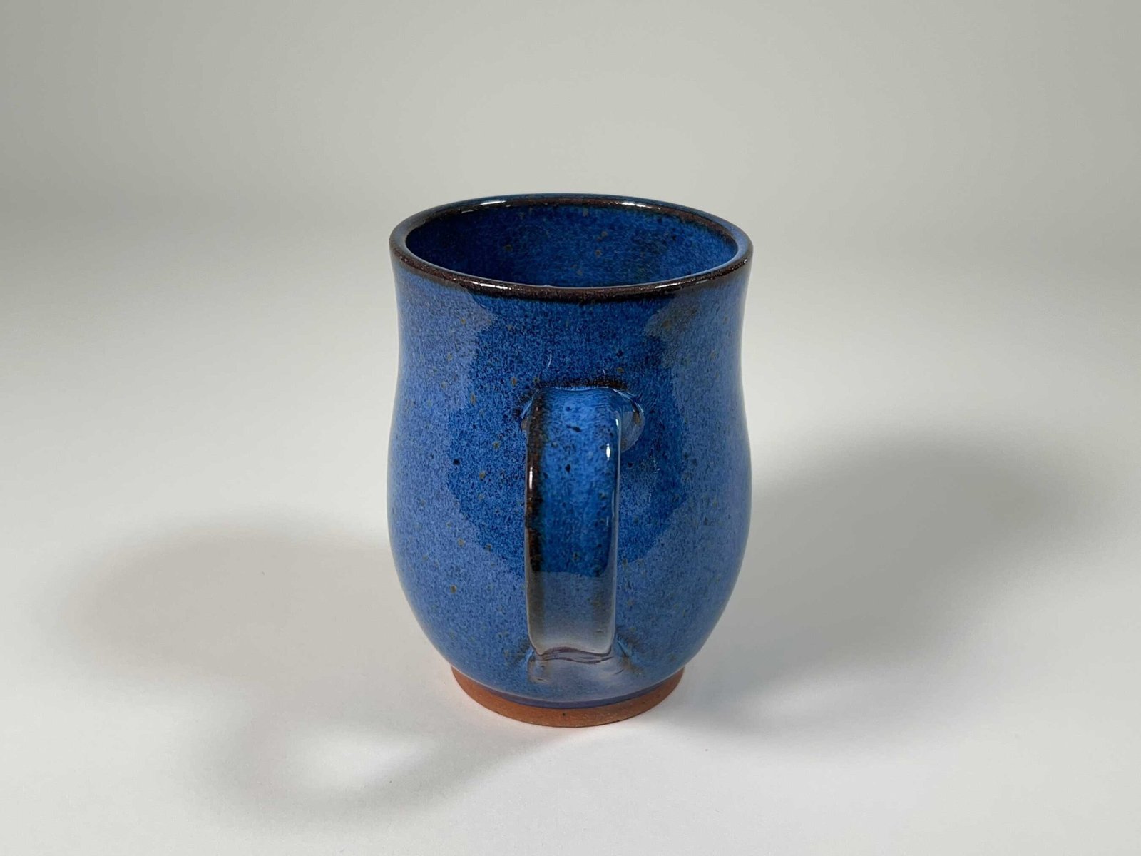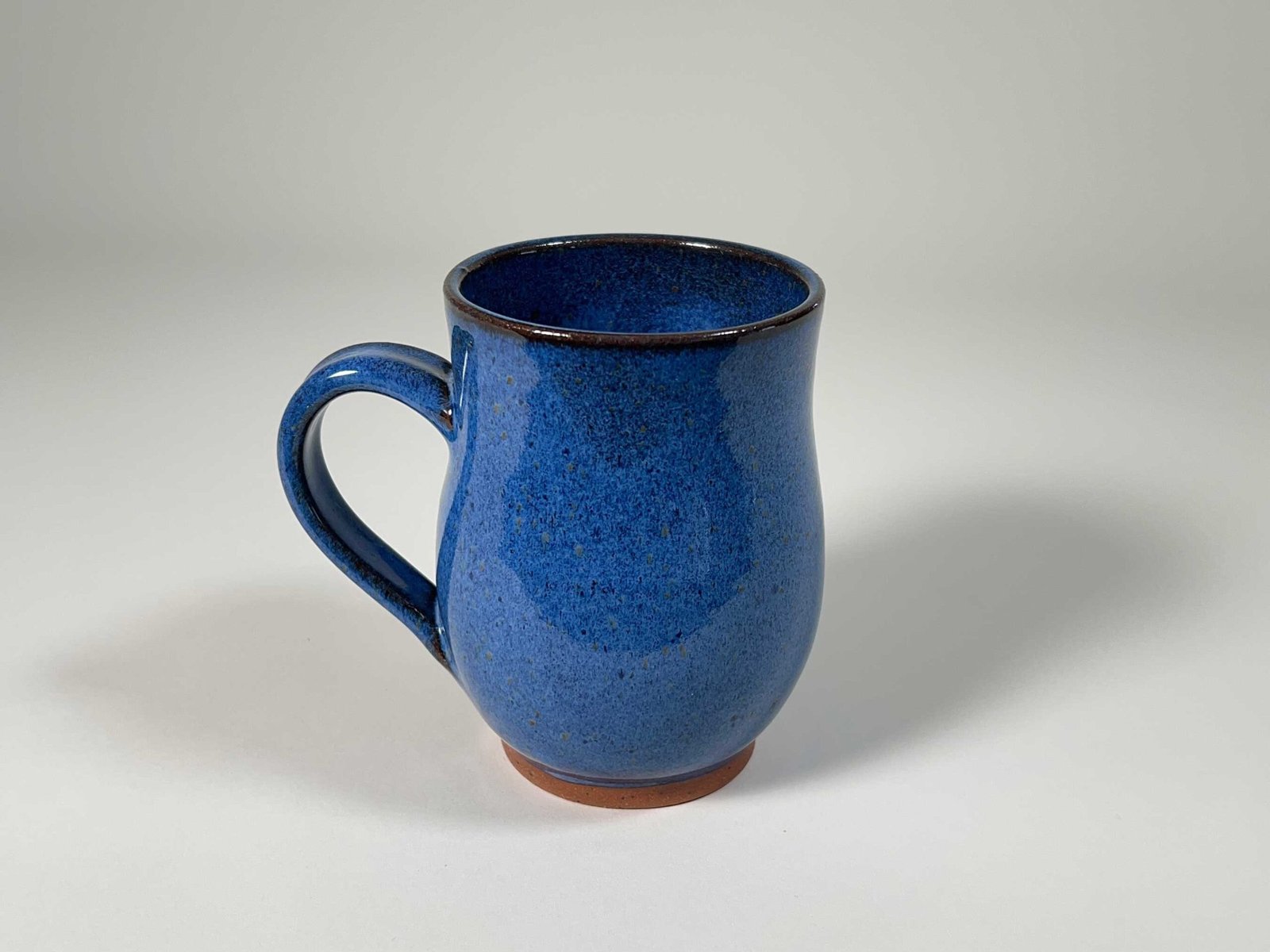 This handmade pottery mug with blue glaze is perfect for coffee, tea, or any hot or cold beverage. It holds about 16 fl oz. and is perfect for your favorite drink. There are natural color variations in the glaze due to this particular clay/glaze combination, which is what makes handmade pottery so special.